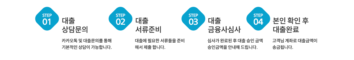 고객님은 회사가 수집하여 처리하는 필수적?선택적 정보의 수집이용에 대한 동의를 거부할 권리를 가집니다. 다만, 필수적 정보의 수집 이용을 거부하시는 경우 대출신청, 상담 등의 업무처리가 제한될 수 있음을 알려 드립니다.